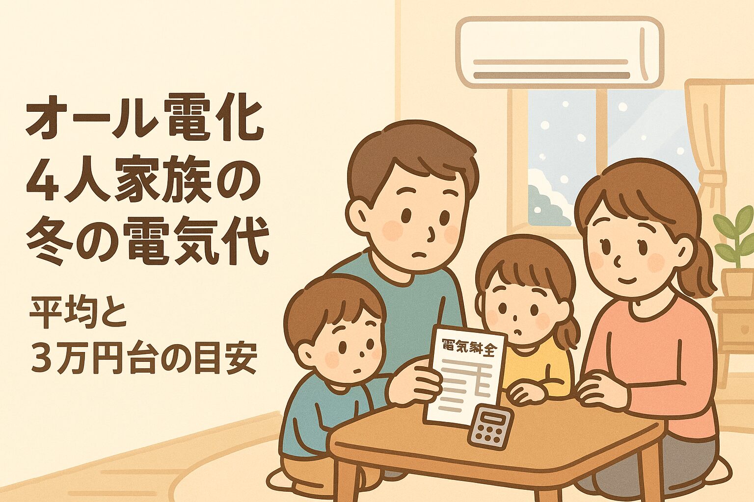 結論から言うと、オール電化4人家族の冬の電気代は、2万円台後半〜3万円台前半なら条件次第で「普通〜やや高め」の範囲です。
