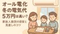 → オール電化電気代冬5万は高い?家族人数別の適正ラインを徹底解説!