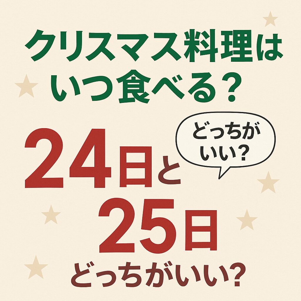 結論から言うと、クリスマス料理は24日でも25日でもOKです。