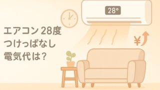 エアコンを28度でつけっぱなしにした時の電気代が高くなる理由を分かりやすく解説します。外気温や断熱性の影響、サーキュレーターや断熱カーテンなど暖房の効率アップの工夫を紹介し、28度のままでも電気代を抑える方法をまとめています。