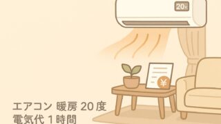 エアコン 暖房 20 度 電気 代 1 時間 の目安を知りたい人向けの記事です。6畳〜リビングまでの料金イメージと、22度23度との節約効果、20度でも寒くなりにくい工夫をわかりやすく解説します。つけっぱなしとオンオフの使い分けも紹介し初心者でも参考にしやすい内容です。