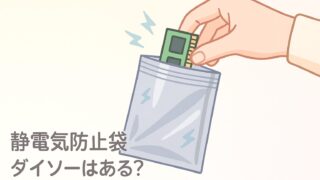 静電気 防止 袋 ダイソーの取り扱い状況や売り場の場所をわかりやすく解説します。セリアやホームセンターとの違い、100均で代用できる場面、通販で選ぶポイントまで整理し、用途に合う静電気対策を選べるようにまとめました。