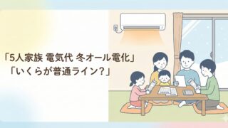 5人家族 電気代 冬 オール電化はいくらが普通?2万円台後半〜3万円台の平均目安や、3万・4万・5万円が高すぎるか判断するチェックポイント、暖房やエコキュートの見直しなど今すぐできる節約術まで具体的に解説し、家計の不安を減らしたい方向けの記事です。