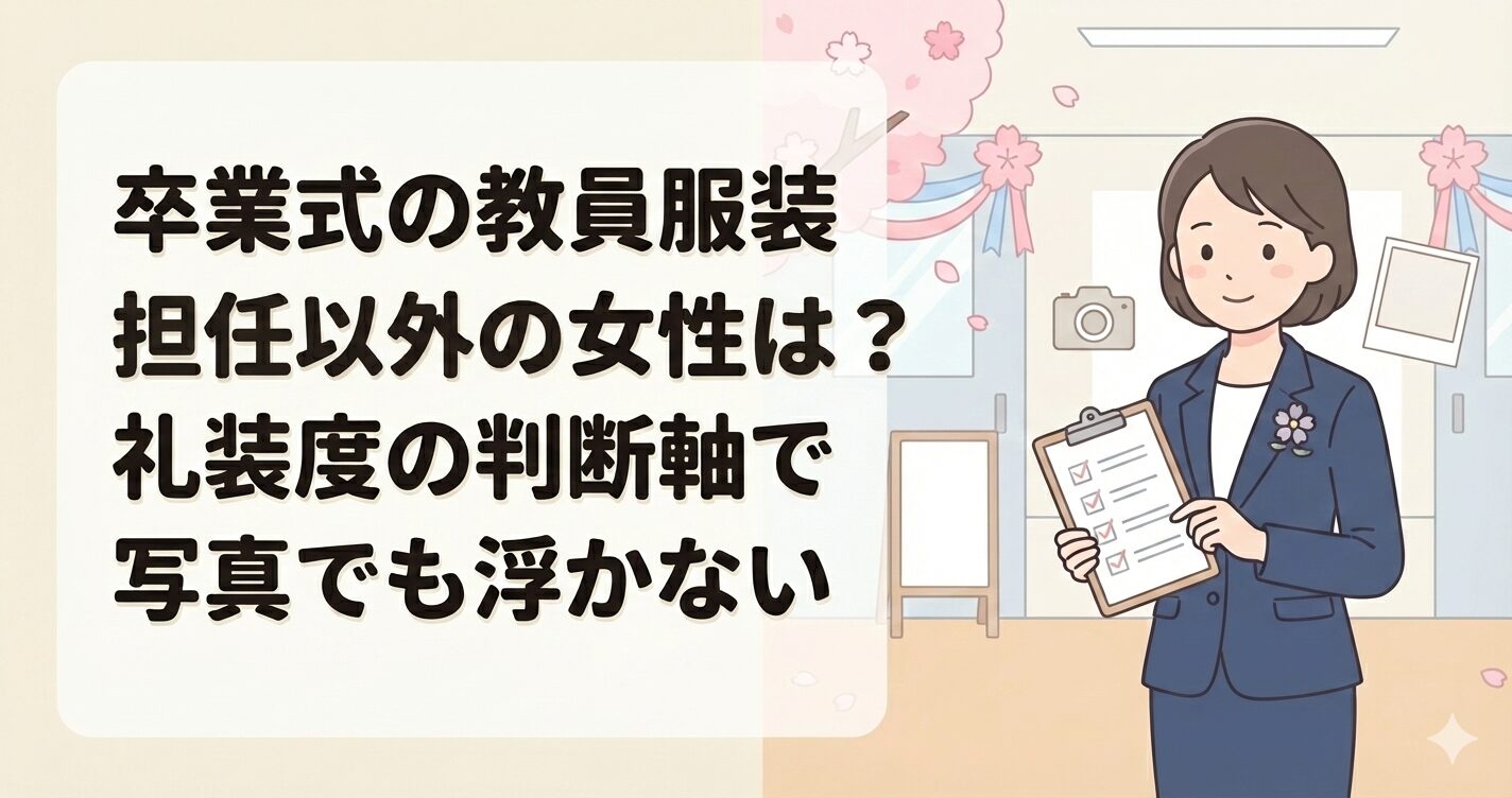 この記事では、卒業式の教員服装で担任以外女性が失敗しないために、礼装度の判断軸、色、小物、NG例、前日チェックまでまとめて解説します。